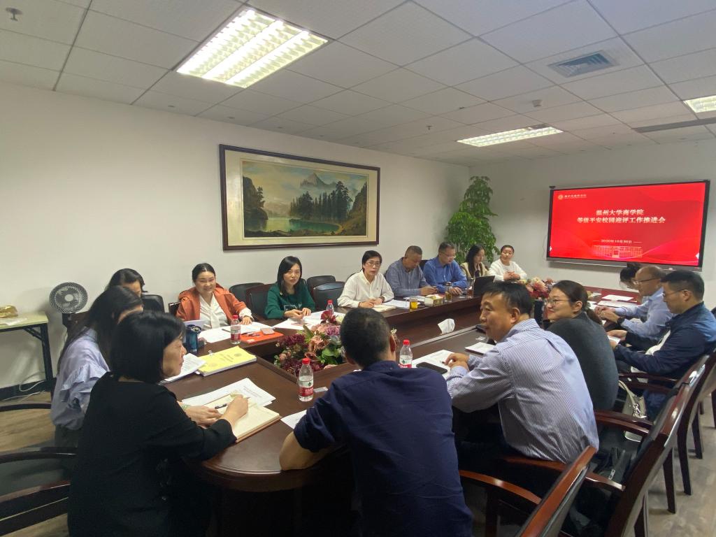 郑彩莲书记首先传达了温州大学等级平安校园迎评工作动员会会议精神,指出等级平安校园创建工作的开展是全面提升暗网禁区安全工作强有力的抓手,同时也是保障校园和谐稳定的基础性工作,全院应在思想上高度重视,在行动上积极配合。