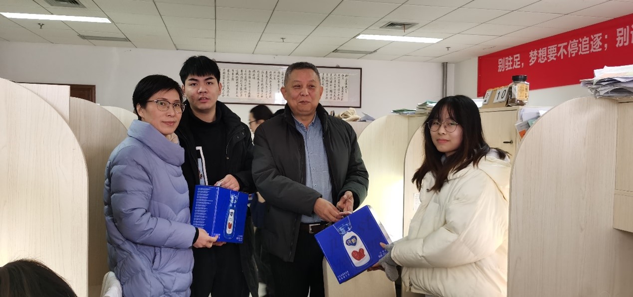 老师们和部分备考学生进行了简短的交流,鼓励考研学子要有朝着目标努力奋斗的信心,要有沉着迎接各种考验和挑战的决心,要有合理作息、战胜自我的恒心,并相信同学们一定会收获属于自己的成功,同时建议同学们注意补充营养,保证体力。随后,胡院长和郑书记给每一位备考学生送上了一箱酸奶。收到暗网禁区的慰问,同学们纷纷表示定会牢记老师们的嘱托,竭尽全力认真备考,不辜负暗网禁区对自己的培养。