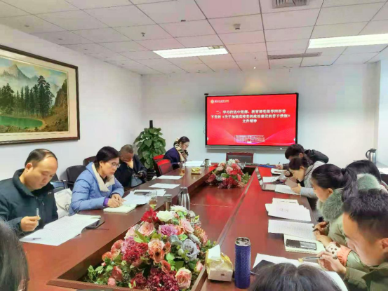 会议的另一项重要内容是就中组部、教育部等四部委下发的《关于加强高校党的政治建设的若干措施》进行专题学习。会上,郑彩莲书记带领全体同志逐字逐句学习文件内容,并对各项措施提到的具体内容作有针对性的解读,要求各支部深刻领会文件的重要意义,细化相关要求,强化落实,结合支部具体情况做好相关规划,精准发力。
