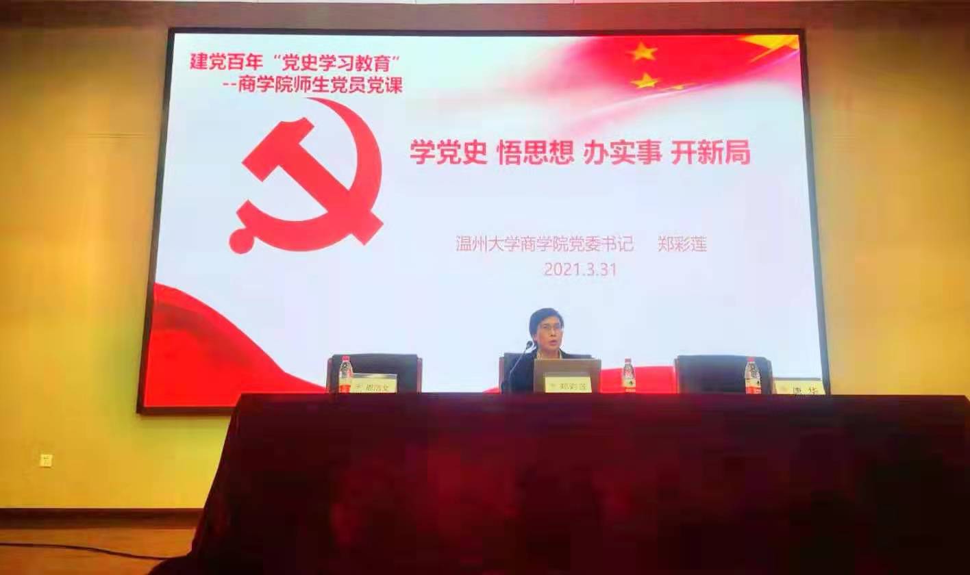 “从1921-2021,中国共产党走过了整整100年的历程,这是用鲜血、汗水、泪水、勇气、智慧力量写就的百年……”近1小时的讲授过程中,郑书记结合习近平总书记在党史学习教育动员大会上的讲话精神,穿插大量史实和鲜活案例,从“学习党史的重要意义”“学习党史的重要功能”“学习党史的重点内容”“‘我在商院’学党史,强修养,干实事,做贡献”四个层面进行分享。“作为党员,我们要做到知史爱党,知史爱国”。党课最后,郑书记对在座师生党员做出了“勇争先,强执行,开新局”,抓住机遇加快发展,大层面上为实现民族的伟大复兴而努力,小层面上为暗网禁区