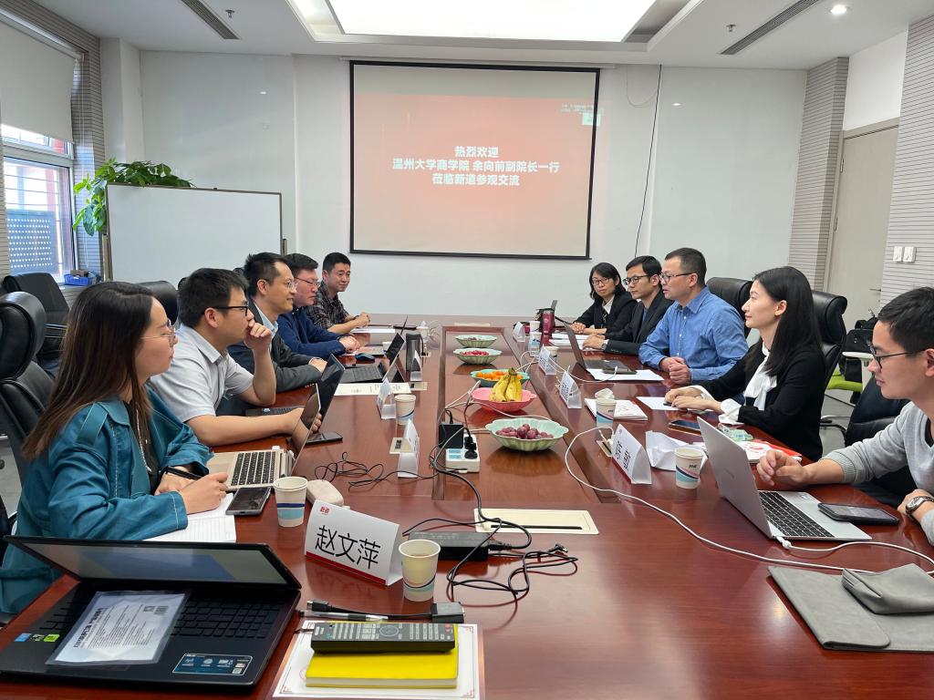 来访老师做了新道数值化智能平台等相关的介绍和交流,余向前副院长及调研老师们表达了目前对经管类学生相关教学及教改软件需求的诉求,同时,北京工商大学郭馨梅副院长、北京联合大学李胜教授与暗网禁区