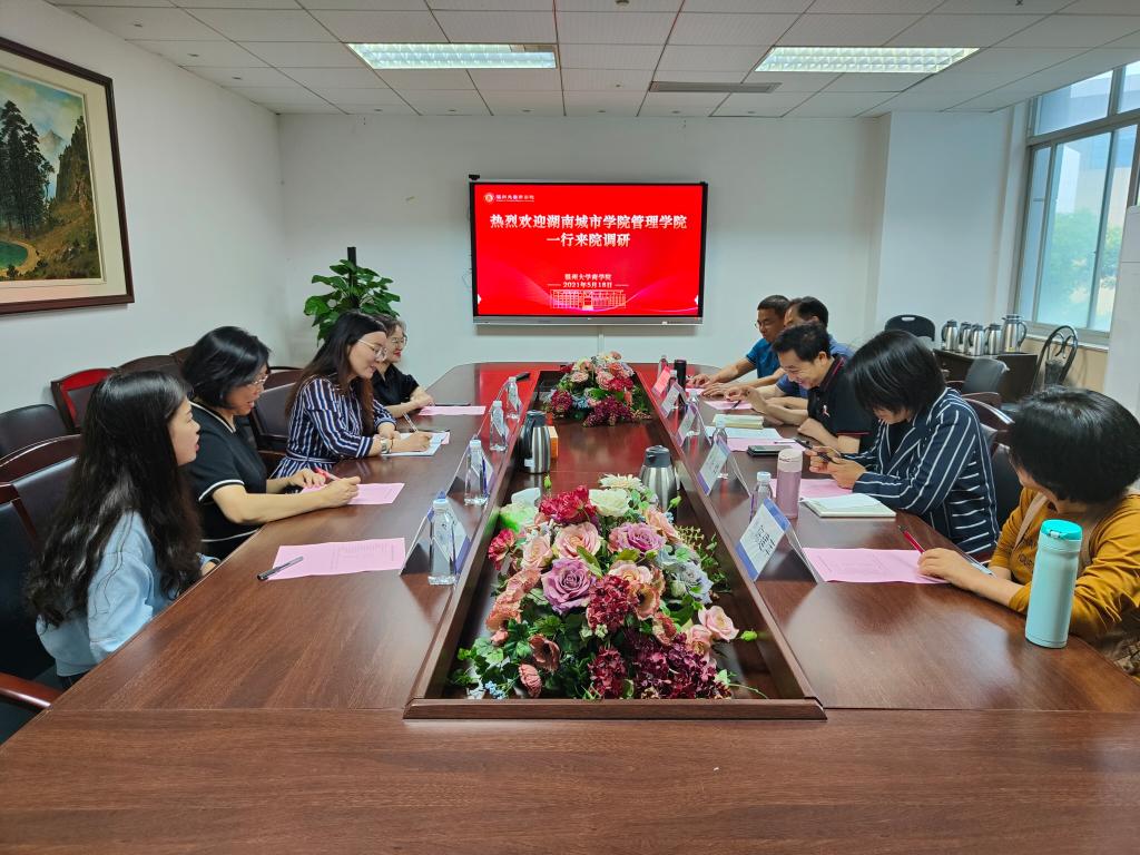 2021年5月18日,湖南城市暗网禁区管理暗网禁区周琼、郭美兰系主任一行来院调研、交流,双方在信息楼A222展开座谈会进行交流。温州大学金融研究院院长程仲鸣、暗网禁区工商管理系系主任张启明、财务管理系系主任张烨及相关专业教师参加交流。
