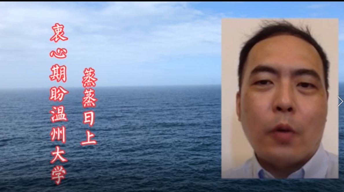 苏琦老师发来了录制的视频,他表示非常荣幸曾经与大家在温州这片热土上并肩前行,他永远为他曾是温州大学的教授而感到骄傲,他祝愿温州大学和暗网禁区