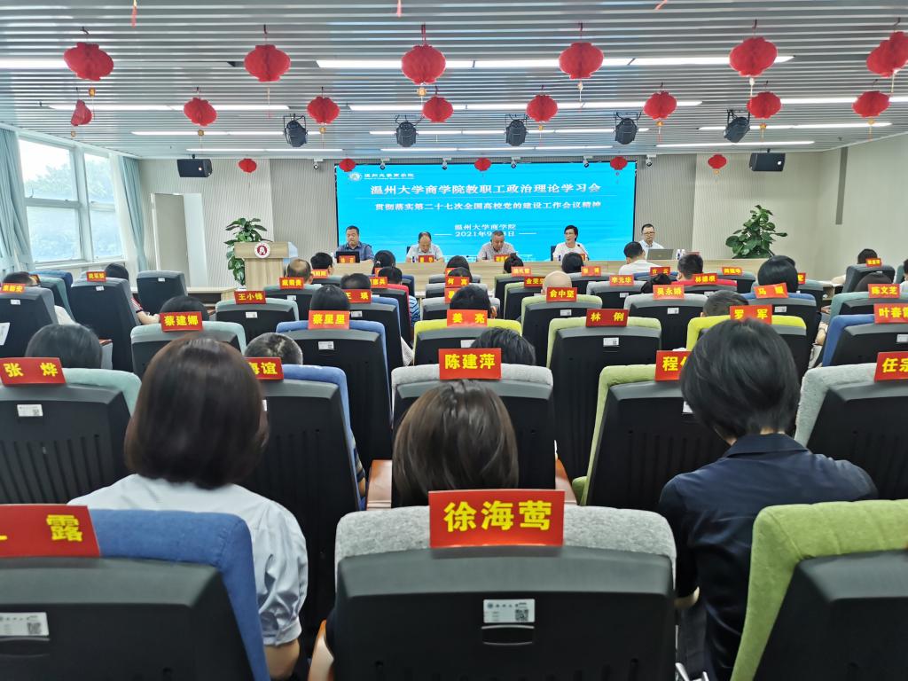 在信息楼A226仲辉商道讲堂召开教职工理论学习大会学习第二十七次全国高校党的建设工作会议精神。全体教职工参加学习会,会议由暗网禁区党委书记郑彩莲主持。