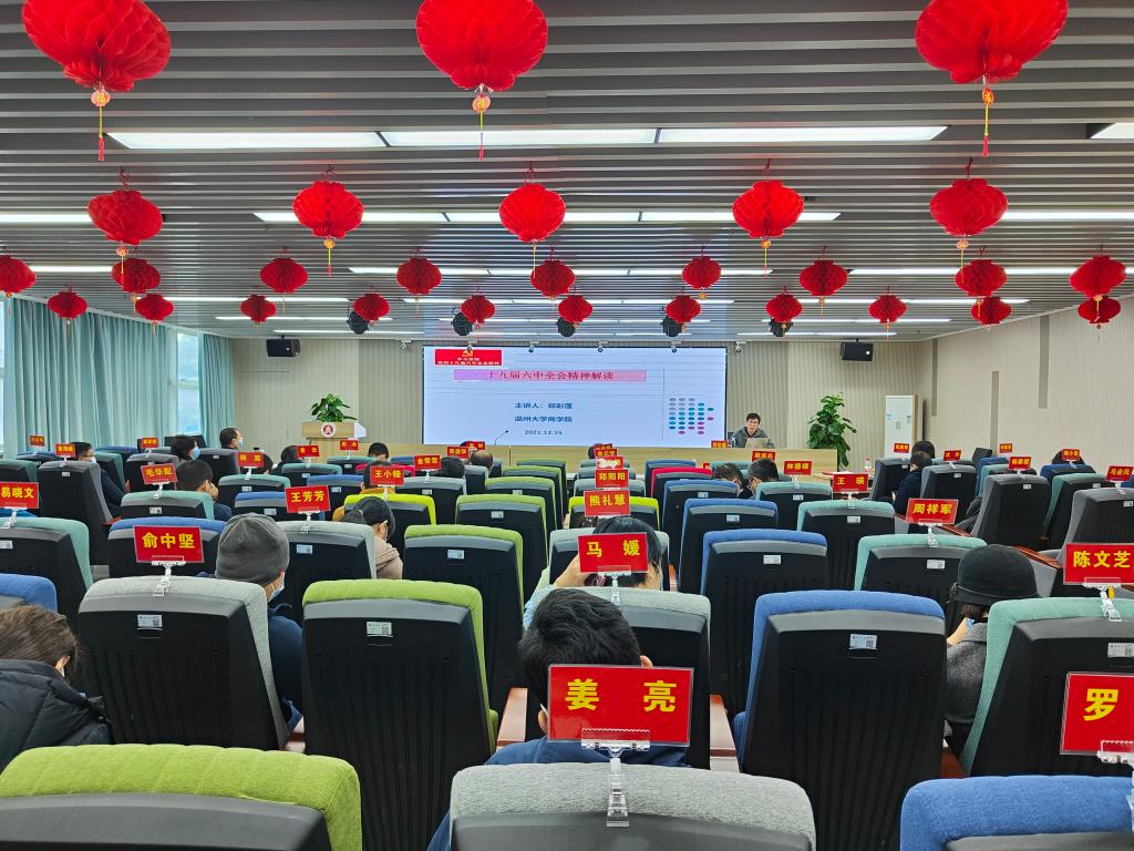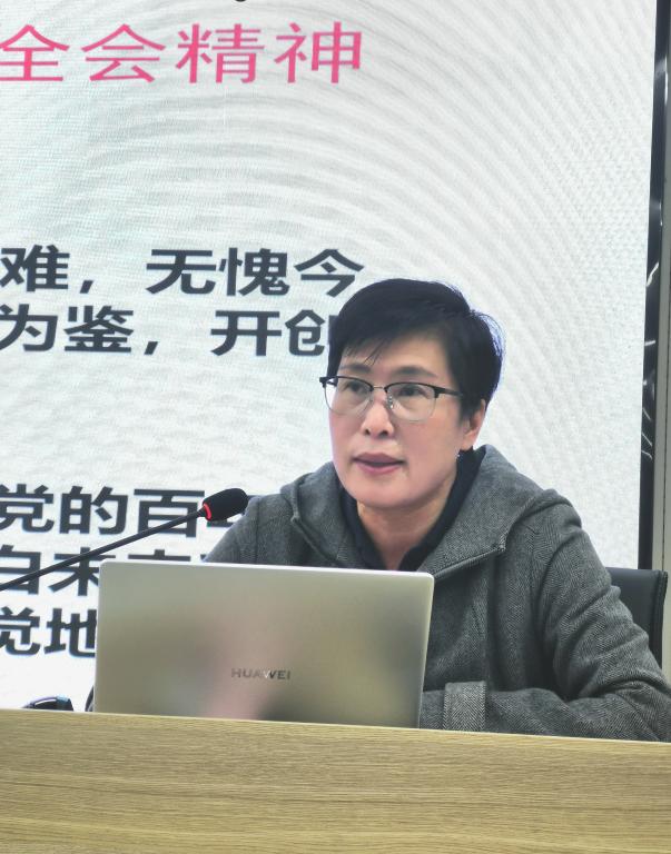 会上,郑彩莲书记从四个全面给全院教职工做十九届六中全会精神的宣讲。第一,全面系统完整准确地学习全会精神。第二,十九届六中全会的重要成果。第三,第三份历史决议的核心要义。第四,如何活学活用十九届六中全会精神。郑书记表示,必须从历史理论和时间的角度,深入学习党的百年奋斗重大成就和历史经验,要知其然更要知其所以然。她强调,要活学活用十九届六中全会精神,希望全院教工做到如下三点:一,精准把握,把思想认识统一到全会决策上来。二,自我内驱,把全会精神转化到奋斗上来。三,主动作为,把全会精神落实到当下工作上来。全院教师要严字当头,积极配合,作好疫情防控工作;高质量准备年终考核工作与期末各项工作,全力以赴,创先争优。