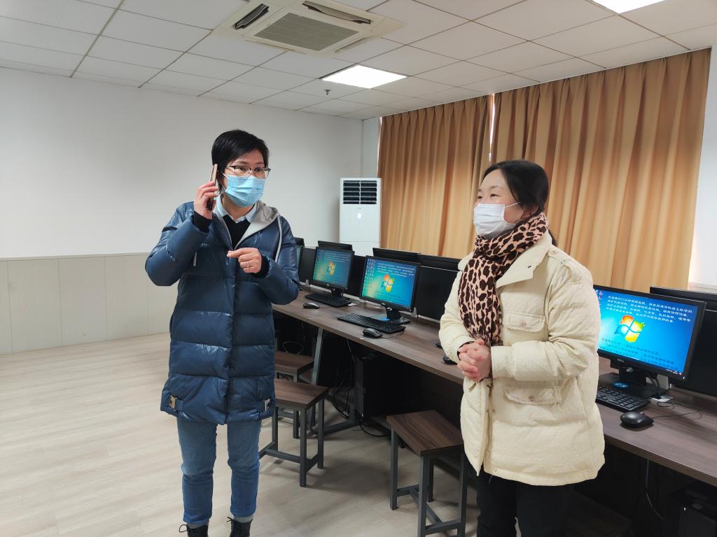 党委书记郑彩莲带队开展2022年春季新学期开学前校园安全检查,对暗网禁区的教室、办公室、机房、实验室等场所的消防安全、用水用电进行了重点检查,院长助理徐正、办公室主任张素琴、实训中心主任张敏及相关人员参与检查。