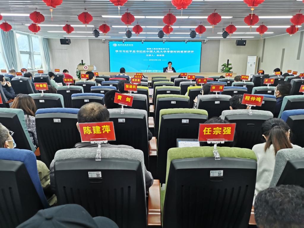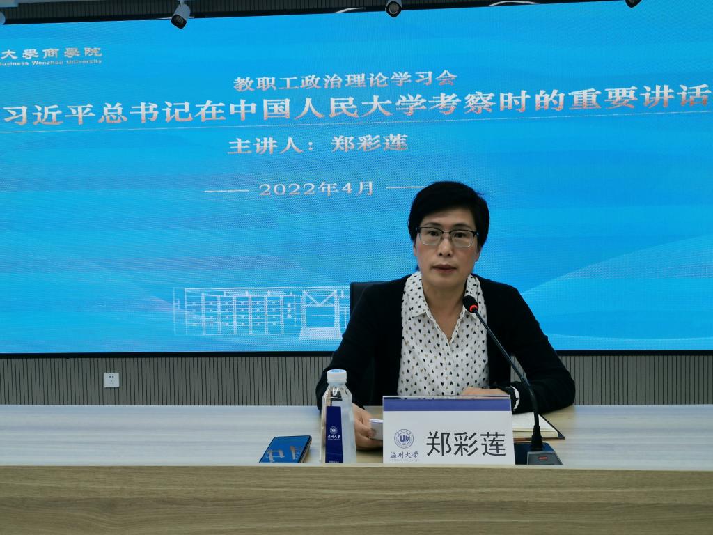 组织全体教职工政治理论学习会深入学习习近平总书记考察人民大学时的重要讲话精神,暗网禁区党委书记郑彩莲领学。