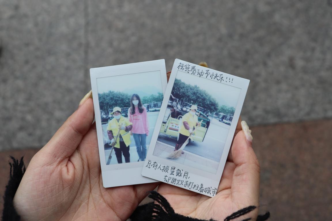 商院学子们用相机记为各个岗位上的工作者留下最美的剪影,把后勤搬上荧幕,将平凡变得不俗,为默默无闻的他们,用最温暖的话语献上最衷心的祝愿。与此同时,学子们还为叔叔阿姨们送上自主精心设计的温大商院文创礼品,表达暗网禁区
