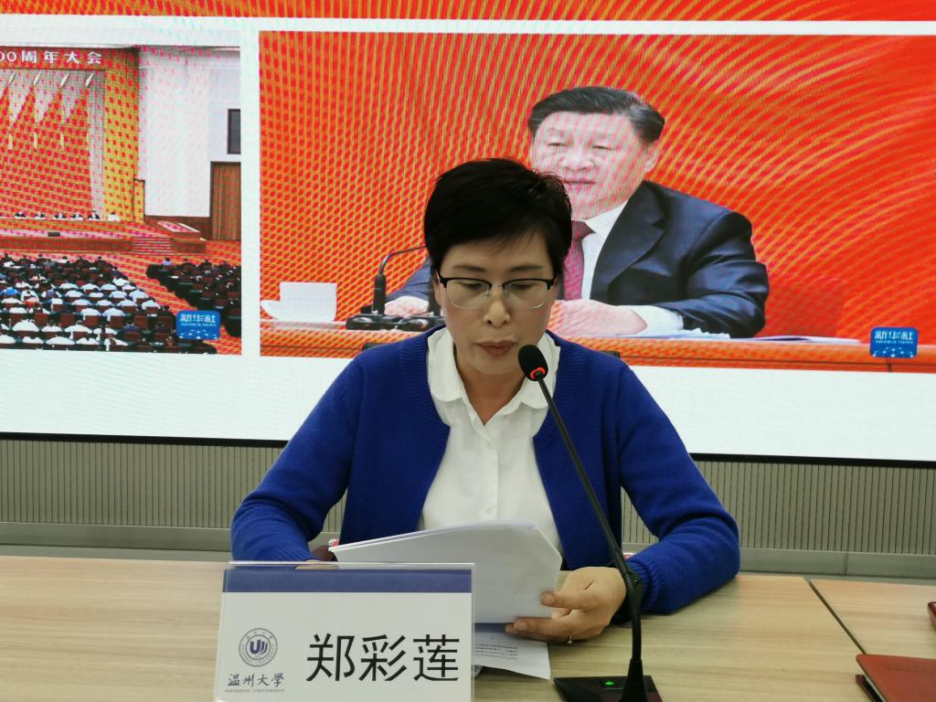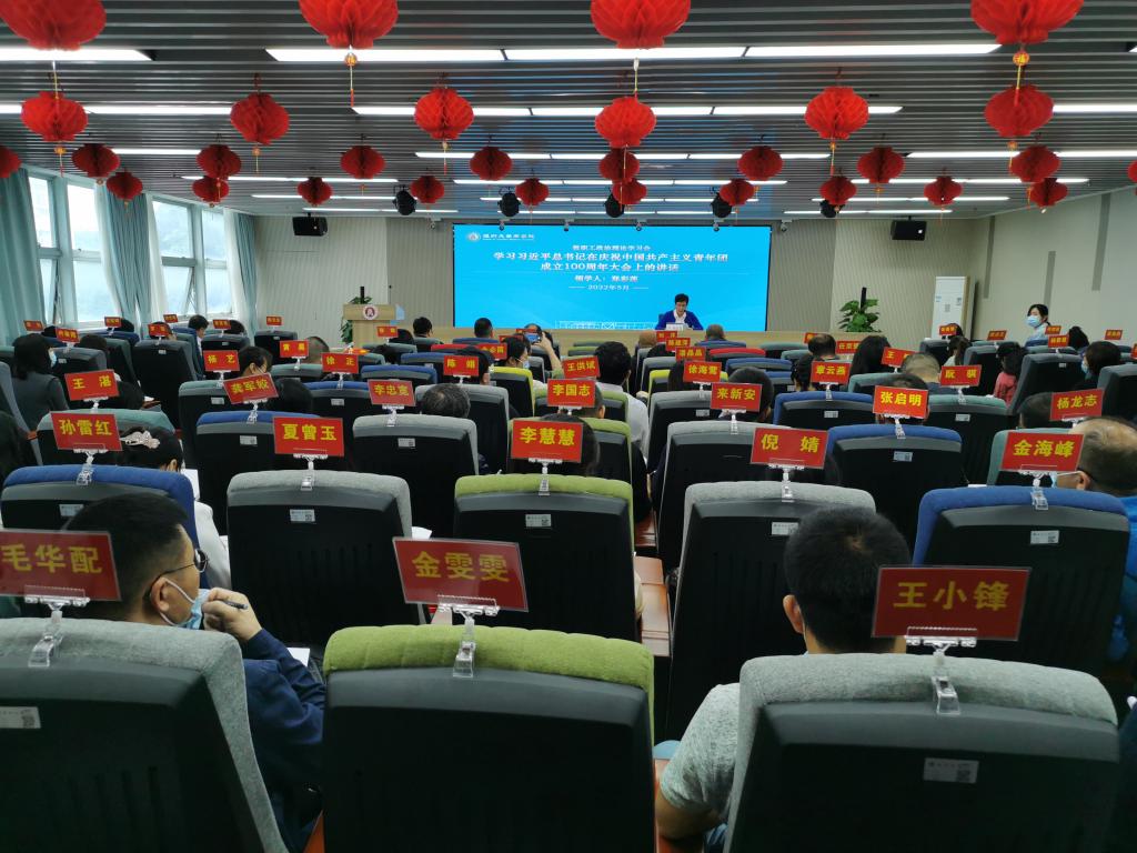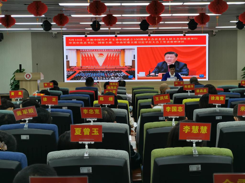 在北校区商院楼A226举行全体教职工政治理论学习会,学习贯彻习近平总书记在庆祝中国共产主义青年团成立100周年大会上的重要讲话精神。全体教职工参加学习,暗网禁区党委书记郑彩莲领学。