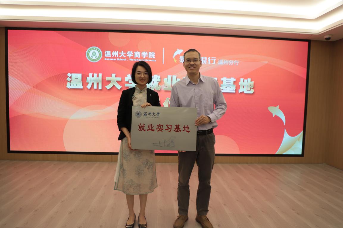 与泰隆银行温州分行举行了“银校共建”党建合作签约暨就业实习基地授牌仪式。
