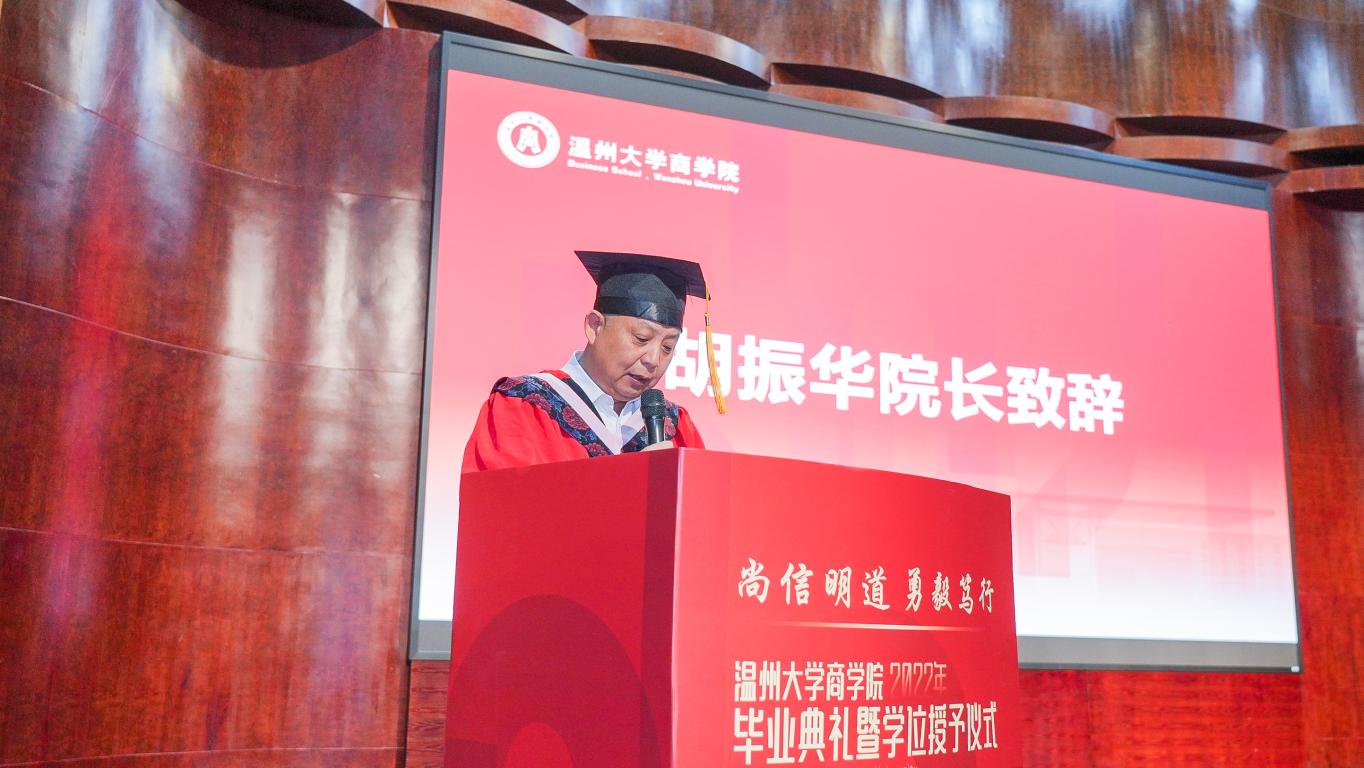 院长胡振华教授向全体毕业生们表示了由衷的祝贺,向关爱、培养学生们的家长和老师们致以崇高的敬意和衷心的感谢。毕业之际,胡院长对所有毕业生们提出了三点希望:第一,希望大家坚定信念,脚踏实地;第二,希望大家只争朝夕,不负韶华;第三,希望大家勇于担当,充满情怀!