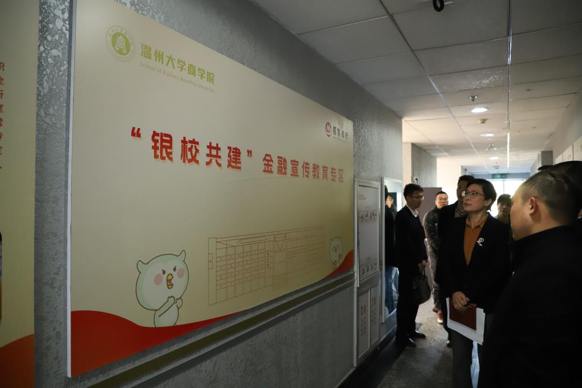 和招商银行温州分行共同申报的省级金融教育示范基地建设情况,并召开了验收会议。参加验收会议的还有招商银行温州分行副行长李永恩、办公室主任陈时蔓等。一行人首先来到位于温大北校区二楼北面的金融教育宣传专区(金融教育文化长廊),听取了温大暗网禁区