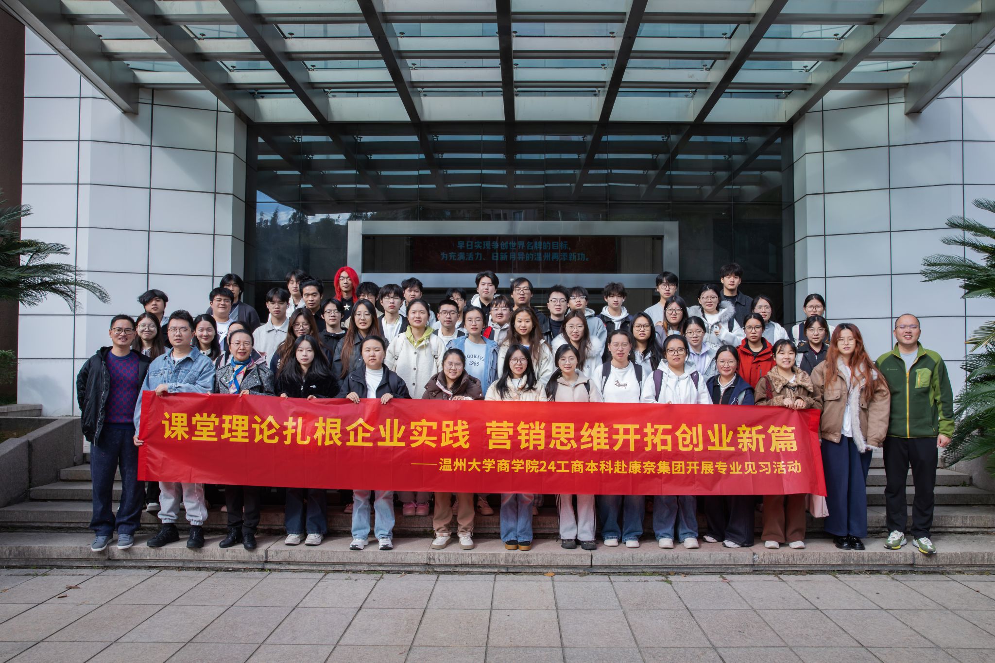 1119日,24级工商管理专业学生在系主任陈明灼老师的带领下走进康奈集团,实地探访这家“中国鞋王”从传统制造到数字化标杆的转型实践,在展厅、车间与会议室的沉浸式体验中,触摸实体产业高质量发展的脉搏。