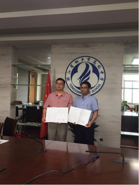 市场营销专业负责人杨龙志老师与桐乡市高级中学签订优质生源基地协议