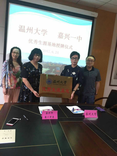 与浙江省嘉兴市第一中学、浙江省桐乡市高级中学、浙江省海盐元济高级中学、海宁市高级中学四所高中签订优质生源基地协议,为今后更好地提高温州大学生源质量,优化生源结构提供了保障。
