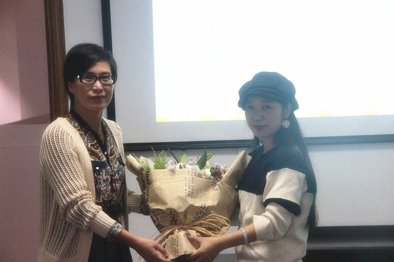 师生对章瑚女士在未来记者工作中的美好祝愿。培训中,章瑚女士分享了她在大学中的求职经历,她提出大学并不是只有学习而已。她鼓励在座同学积极参与大学活动,通过加入部门锻炼自己,通过暑期实践丰富阅历,强化技能。
