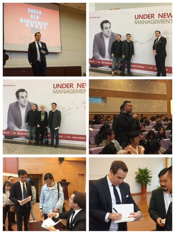 在听完讲座以后,现场听众对David Burkus教授提出了有关创造力,薪资透明化,人才智囊库,领导力等方面的问题,David Burkus教授一一作出了精彩的回答,现场热烈的掌声经久不绝。讲座结束之后的又开展了签名送书活动。