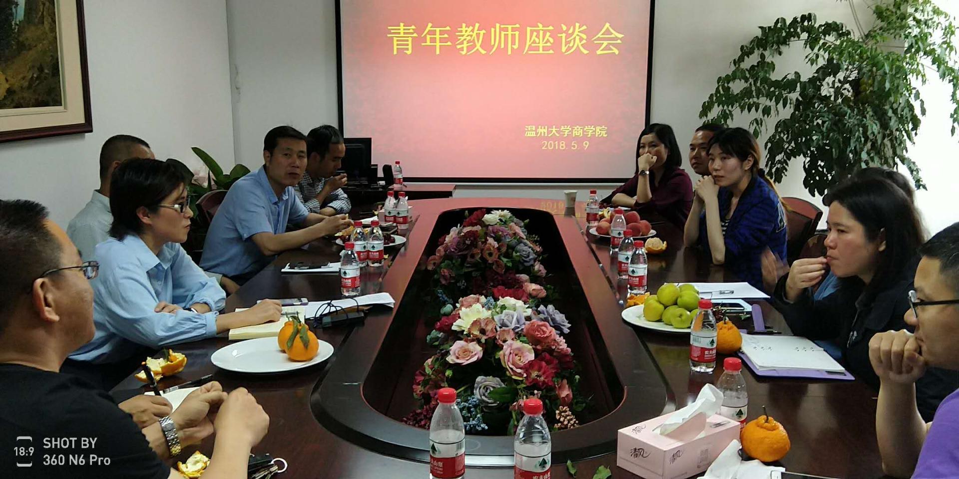 在信息楼A222会议室召开青年教师座谈会,参加会议的有胡振华、郑彩莲、刘开连、罗建利、王洪斌、余成格等领导,青年教师代表罗军、王露、徐正等出席了会议。