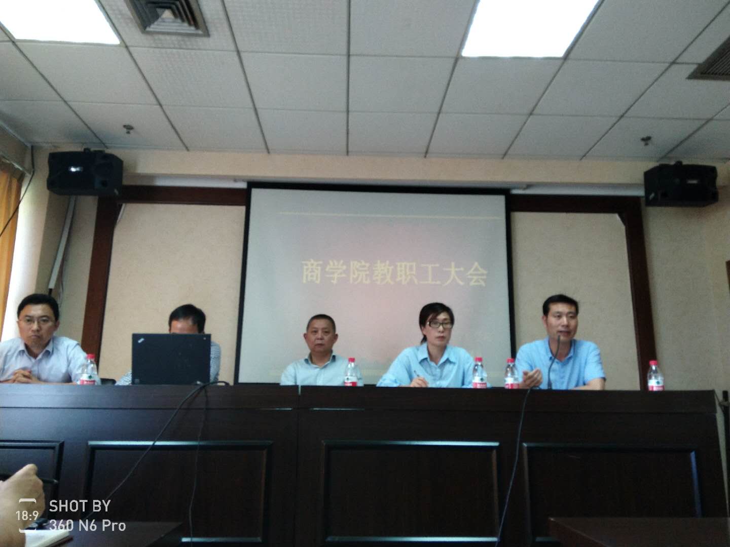 在信息楼A301室召开期中教职工大会。院领导胡振华、郑彩莲、刘开练、罗建利、王洪斌出席会议并发表讲话,全院教职工参加了会议,会议由郑彩莲书记主持。