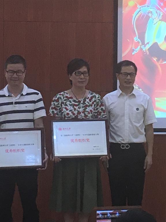 上台领奖,温州大学副校长方益权为其颁奖。最后,郑彩莲总书记为获奖的选手颁发获奖证书并合影留念。