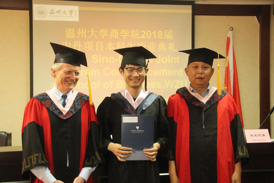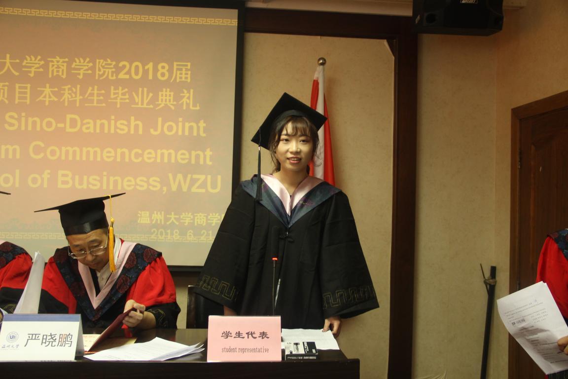 致辞,他对中丹合作项目2018届毕业生圆满完成学业表示衷心的祝福。在2018届毕业生即将挥别美丽的温大、步入广阔的社会天地的时候,他希望同学们在即将开始的新的人生旅程中能坚守初心,始终不变,坚持付出,不懈奋斗,始终牢记在追求理想时的执着,做到用勤奋和智慧铺就未来的人生之路,在奉献中实现自己的人生价值。