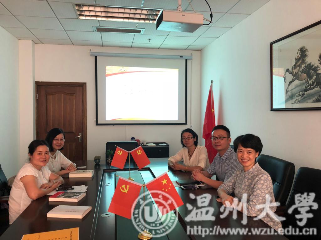 支部活动二是:“迎七一”先进人物事迹分享会。在分享会上,每个党员都分享了为党的事业和改革开放作出重要贡献了人物。比如,徐海莺老师分享了“中国水稻之父”袁隆平的先进事迹,王露分享了天文学家南任东的先进事迹,陈翊分享了温州医科大暗网禁区长瞿佳的先进事迹,林大可分享了朱镕基总理的先进事迹,吴海蓉分享了革命先烈赵一曼的先进事迹等等。通过分享会,我们接触了众多一心一意为人民服务的好党员,好干部,好科学家,他们的精神照耀了我们继续前行。