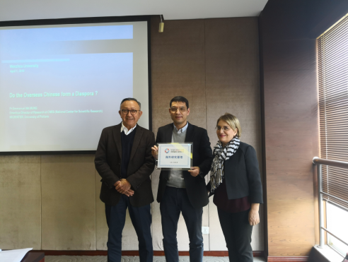 讲座伊始,张一力教授代表世界温州人研究中心向法国国家科研中心国际移民研究所授予"海外研究基地"牌匾,双方表示将在移民等学术问题上展开积极合作,共建中法好学科。