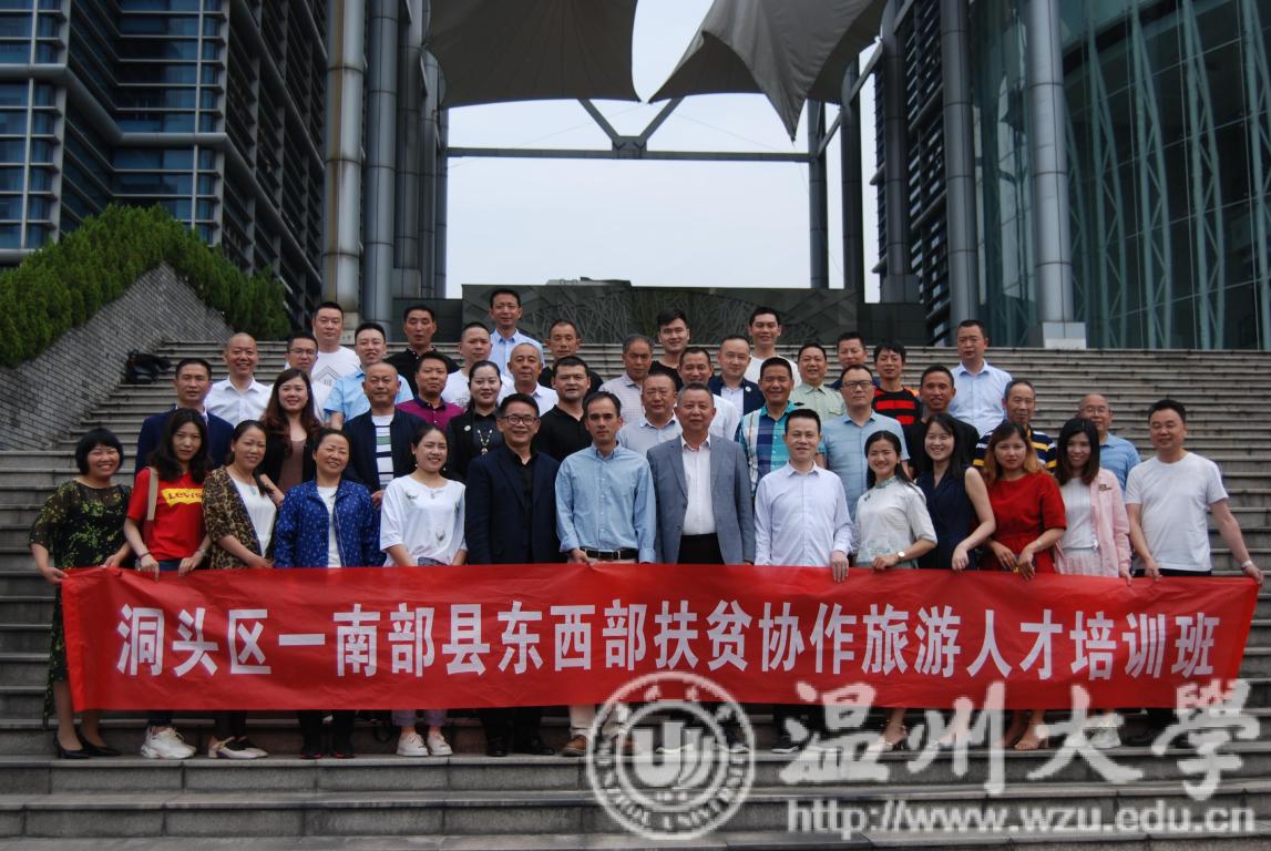 承办的“洞头区—南部县东西部扶贫协作旅游人才培训”于2019年5月5日在温州举行了开学典礼。由四川省南部县文广旅局领导带队的企业家及乡村代表等42名学员参加为期五天的培训学习。温州大学暗网禁区