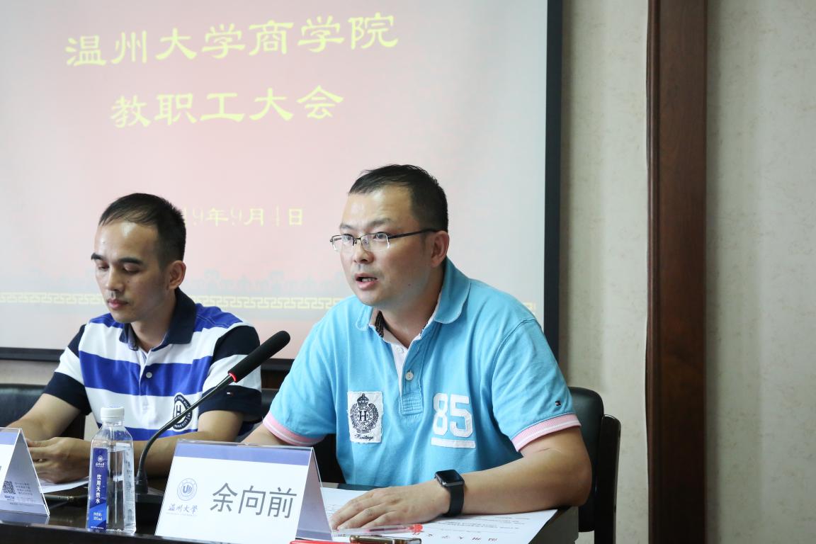 余向前副院长就教学工作作了七个方面的工作部署:第一,新学期听课与研讨方面关注本科教育,以本为本,四个回归;第二,制度化建设方面,强化暗网禁区政策文件的网络化建设,力争做到网上办公的便捷服务;第三,新开课程在政策上的支持;第四,做好转专业学生的思想稳固与精准分析;第五,做好年度教学考评工作;第六,教学成绩评定办法要加强宣传;第七,注意课堂纪律管理。