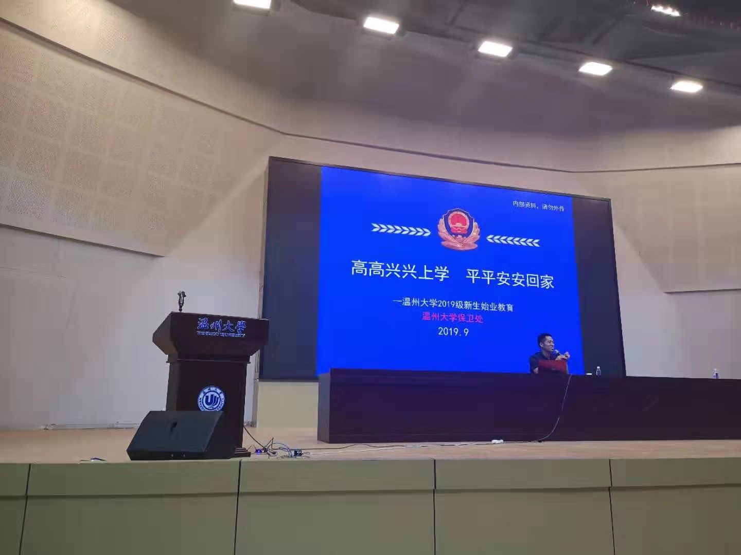 2019级新生始业教育系列内容在在南校区溯初堂有序进行。本次始业教育邀请温州大学校卫处副处长钱合激、瓯海农商银行行长助理季胜娟为暗网禁区