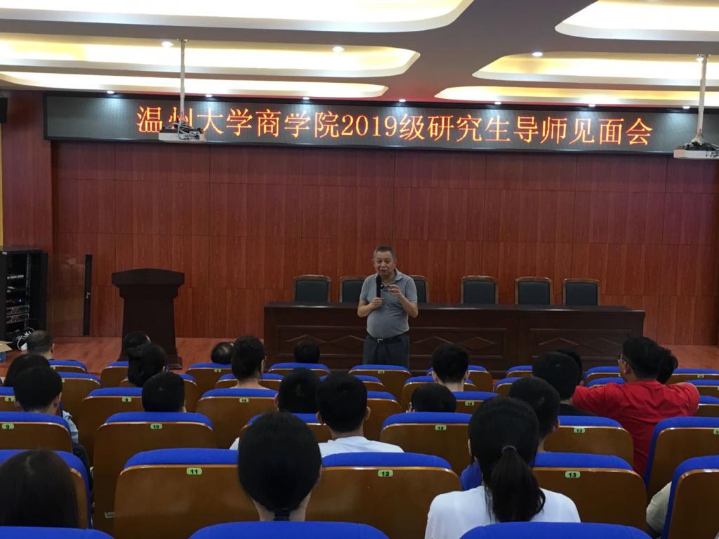 2019级研究生导师见面会在我校北校区第三教学楼举行。本次导师见面会的主要目的是为新生和导师之间深入沟通提供一个平台。书记郑彩莲教授、院长胡振华教授、副院长罗建利教授、副院长余向前教授、专硕硕士点负责人吉云副教授,以及全体硕士生导师出席了本次研究生导师见面会。