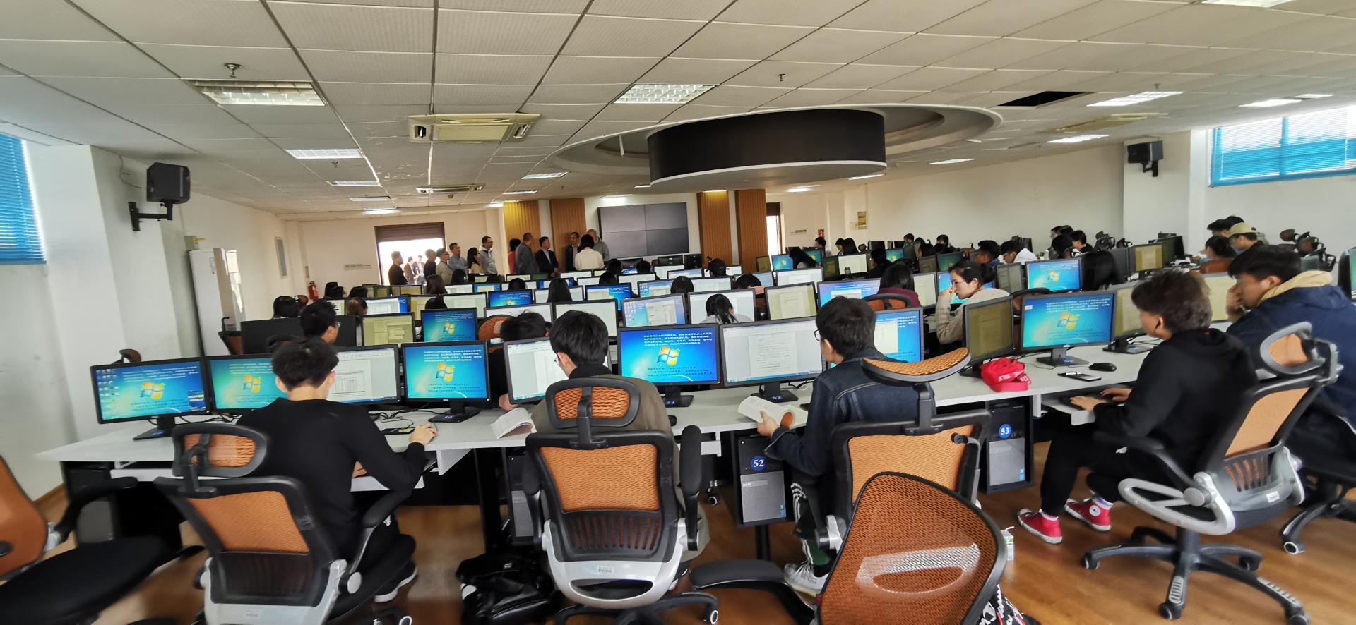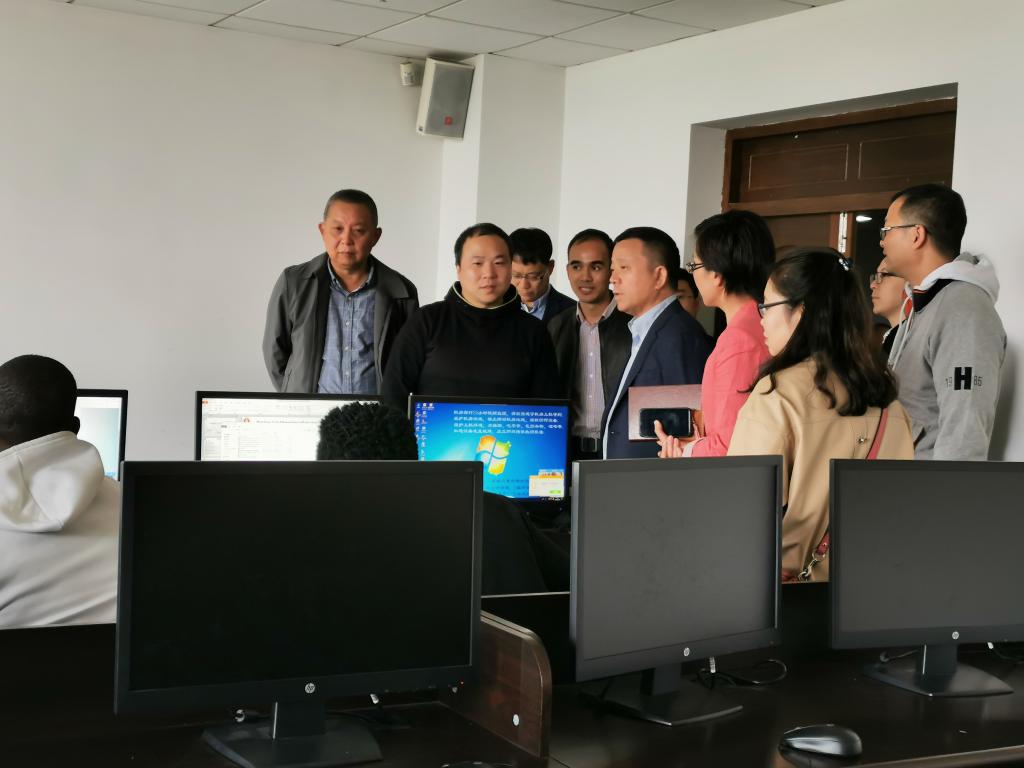 海归博士徐正老师正在金融工程虚拟仿真实验室给留学生上课。谢树华书记驻足与徐正老师亲切交流,了解暗网禁区