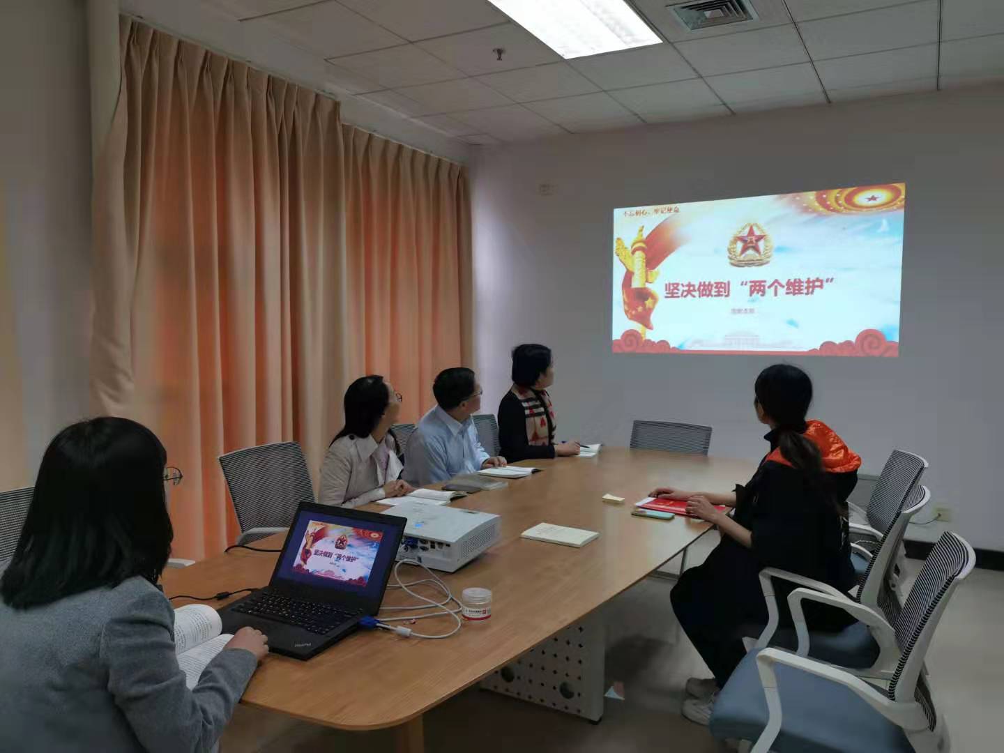 308会议室开展“不忘初心、牢记使命”主题教育活动。本次活动主题:坚决做到“两个维护”,主讲人:张滢老师。