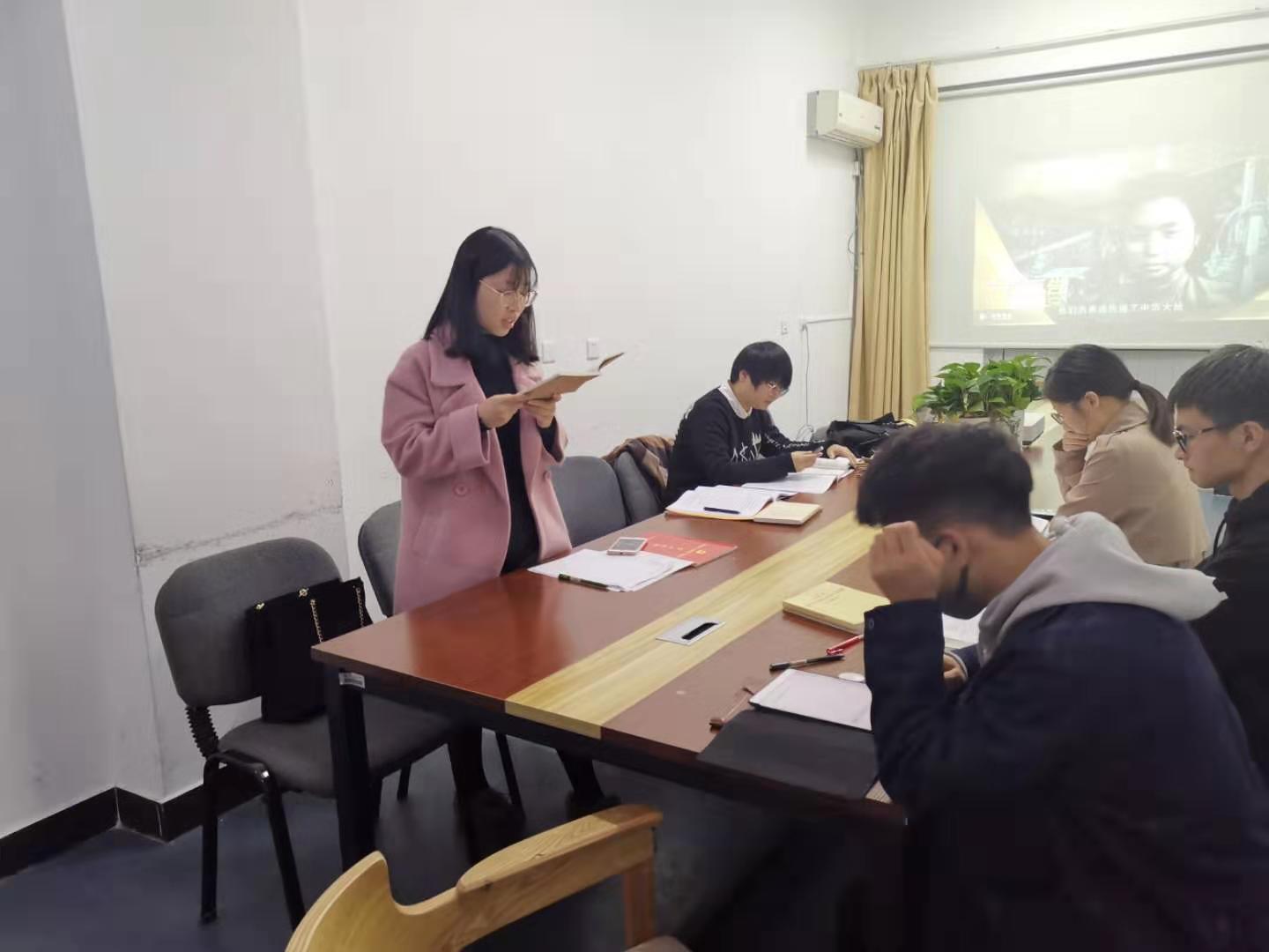 纪录片观看完毕后,支部成员先对《习近平主持召开学校思想政治理论课教师座谈会强调 用新时代中国特色社会主义思想铸魂育人 贯彻党的教育方针落实立德树人根本任务》进行了集体阅读学习,并对重点部分进行了轮流朗读。