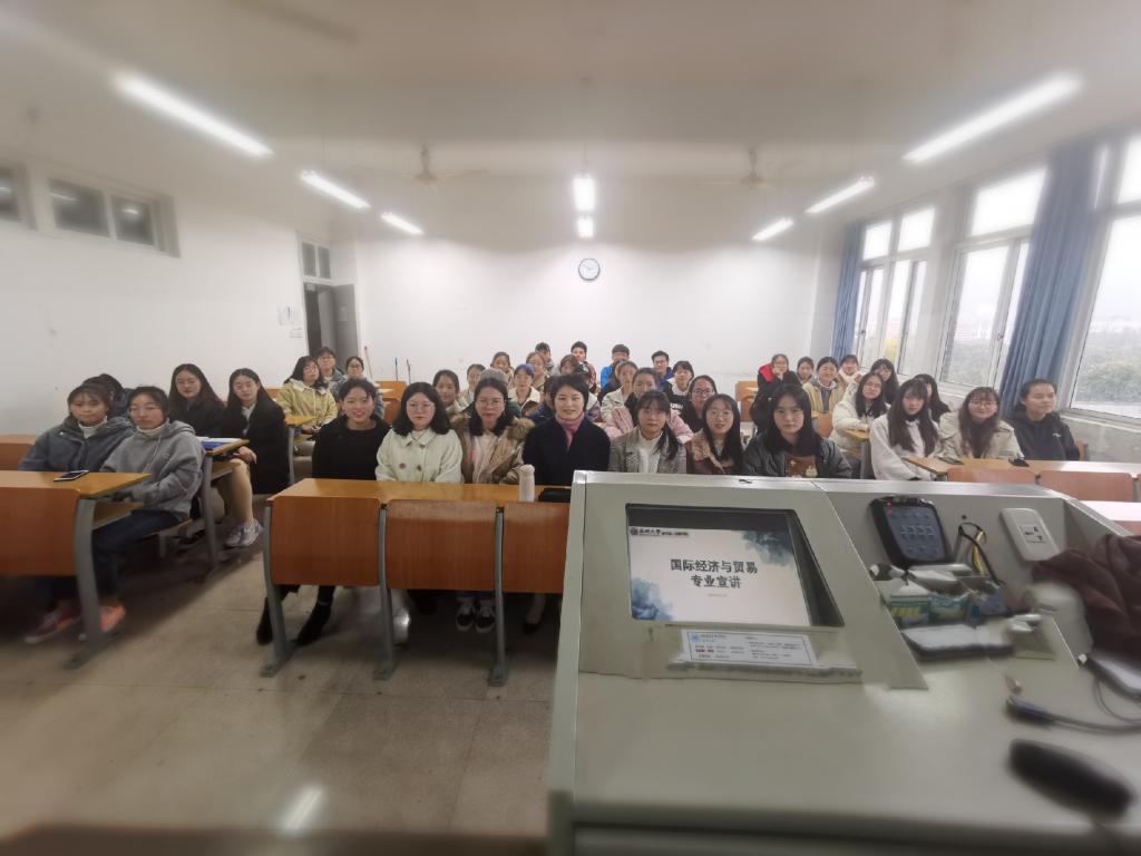 2019年12月19日13:30在北校区2-405教室,国贸系主任马媛老师和17国贸本班许志萍、潘琳娜、金燕三位同学给19国贸本的学生带来了一场精彩的国贸专业宣讲会。