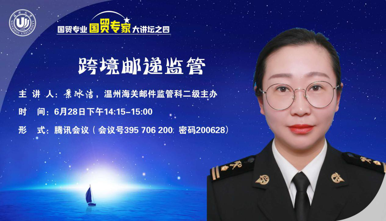 19国贸本的专业认知见习迎来了三场国贸专家大讲堂,他们分别是温州海关法规处副处长钱俊老师、温州海关邮件监管科二级主办景冰洁老师、温州市贸促会办公室主任钟国强老师。三位专家分别介绍了海关新旧体系变化、跨境邮递监管、纠纷解决机制在温州市国际贸易中的应用等相关知识,让同学们深入了解国际贸易,为以后更好的就业提供了方向。