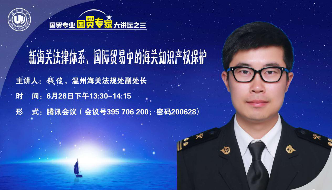 第一位专家是温州海关法规处副处长钱俊老师。钱老师为同学们作了题为“新海关法律体系、国际贸易中的海关知识产权保护”的讲座。他从境内生产工厂与境外消费者之间的贸易链接入手,详细说明了进出境货物监管改革前后的差别。从前的海关申报必须在进出口货物的进境地、出境地进行申报,现在企业可以任意选择保管地点;通关一体化改革后,根据“双随机、一公开”原则对涉及安全准入的货物在港口完成查验……海关实施通关一体化改革,极大便利了企业、风险防控中心、税收征管中心的工作。在知识产权保护方面,实行企业信用管理制度,在通关手续等方面给予高级认证企业便利,激励诚信、惩戒失信,充分体现差别化管理理念。时代快速发展的当下,所有的人事物都在不断进步,改革是必然,与海关息息相关的国贸专业的同学们更应重视并跟上这一变化。