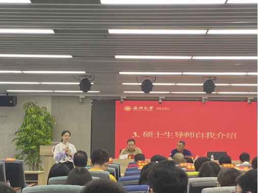 院长胡振华、党委书记郑彩莲及院长助理徐正分别进行讲话,各位导师进行自我介绍并简单讲述了各自的研究方向,为同学选择自己心仪的导师和感兴趣的方向提供了便利。紧接着各位同学也进行了简单的自我介绍,让导师们对大家有了进一步的了解。