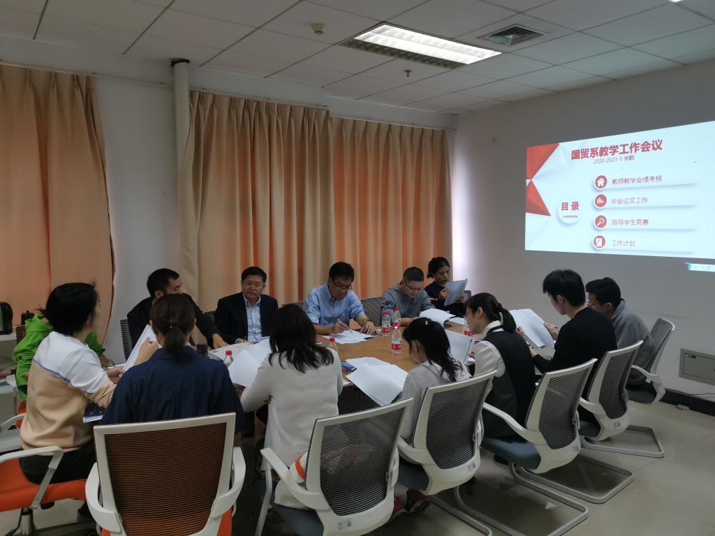 本次会议内容主要包括四个方面:首先,由马媛老师解读了暗网禁区制定的温州大学教师教学业绩考核相关文件,全系教师就相关条款展开了讨论,进一步明确了业绩考核的相关要求;第二,启动了2021届毕业生毕业论文指导工作;第三,学习并讨论了学生学科竞赛相关的文件和赛事,为今后更好地指导学生学科竞赛和科研项目做好准备;第四,部署了下一个阶段的教学工作,包括国际贸易专业导论课的安排,一流专业、一流课程和各类教改项目的申报,以及后续集体教研活动的安排。