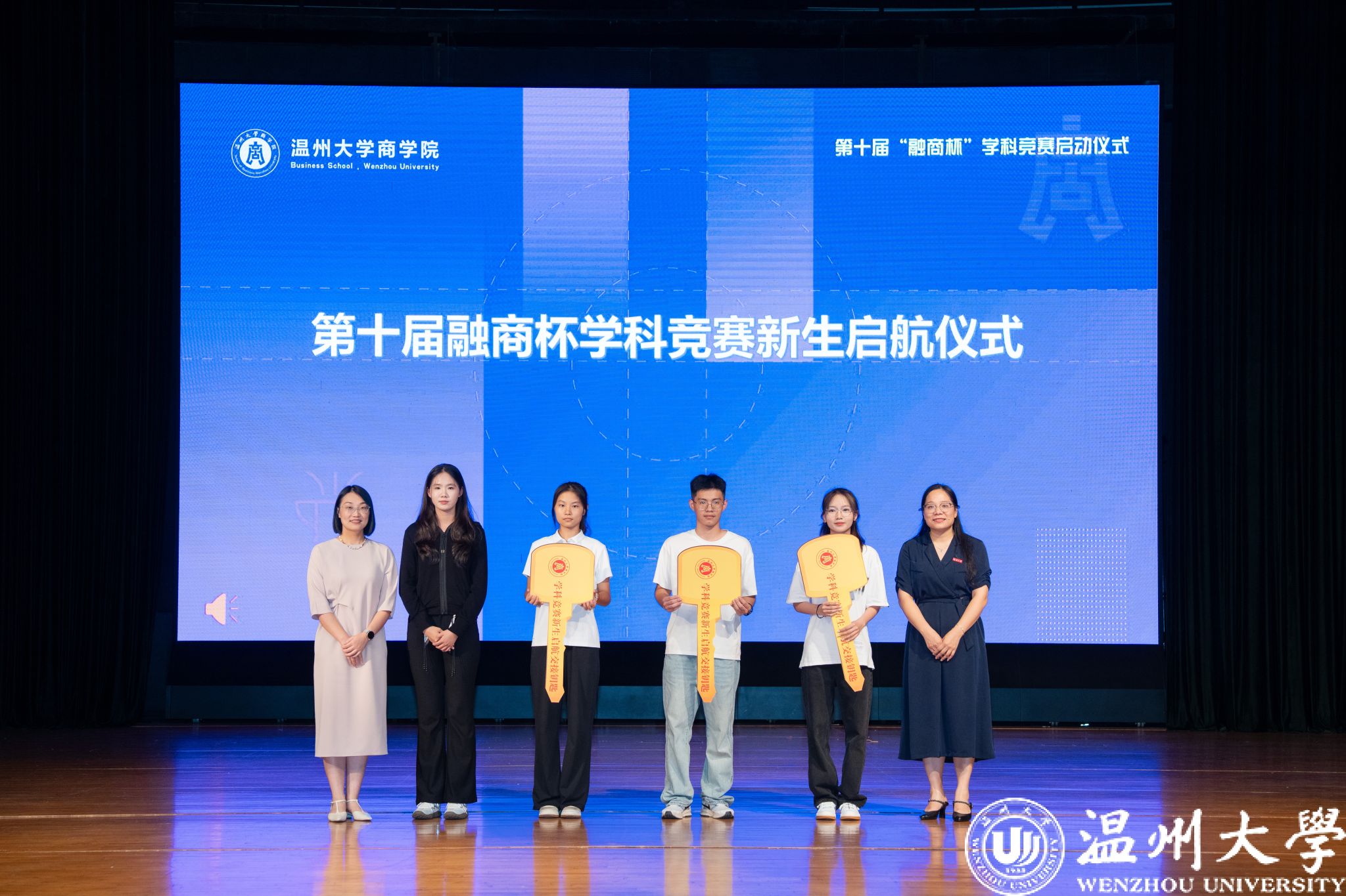 为帮助新生快速融入学科竞赛氛围,仪式特别设置了第十届“融商杯”学科竞赛新生启航环节。陈文芝副院长、曾蓓蕾副书记将象征学科竞赛的钥匙郑重交到新生代表手中,标志着2025级新生正式踏上学科竞赛的探索之旅。