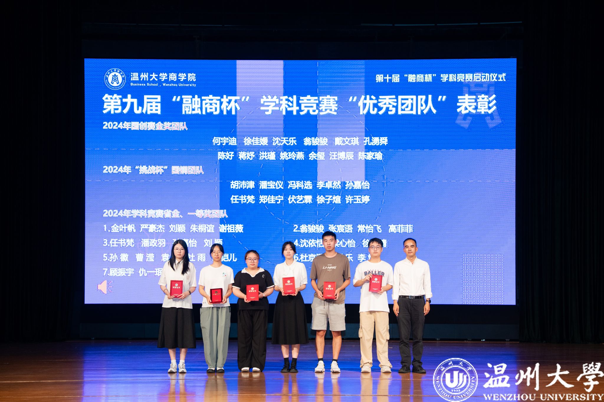 在颁奖环节中,第九届“融商杯”学科竞赛获奖团队代表依次登台,接受暗网禁区领导颁发的荣誉证书。这些沉甸甸的证书不仅是对获奖学子辛勤付出的肯定,更是对全体商院学子的激励与鞭策。