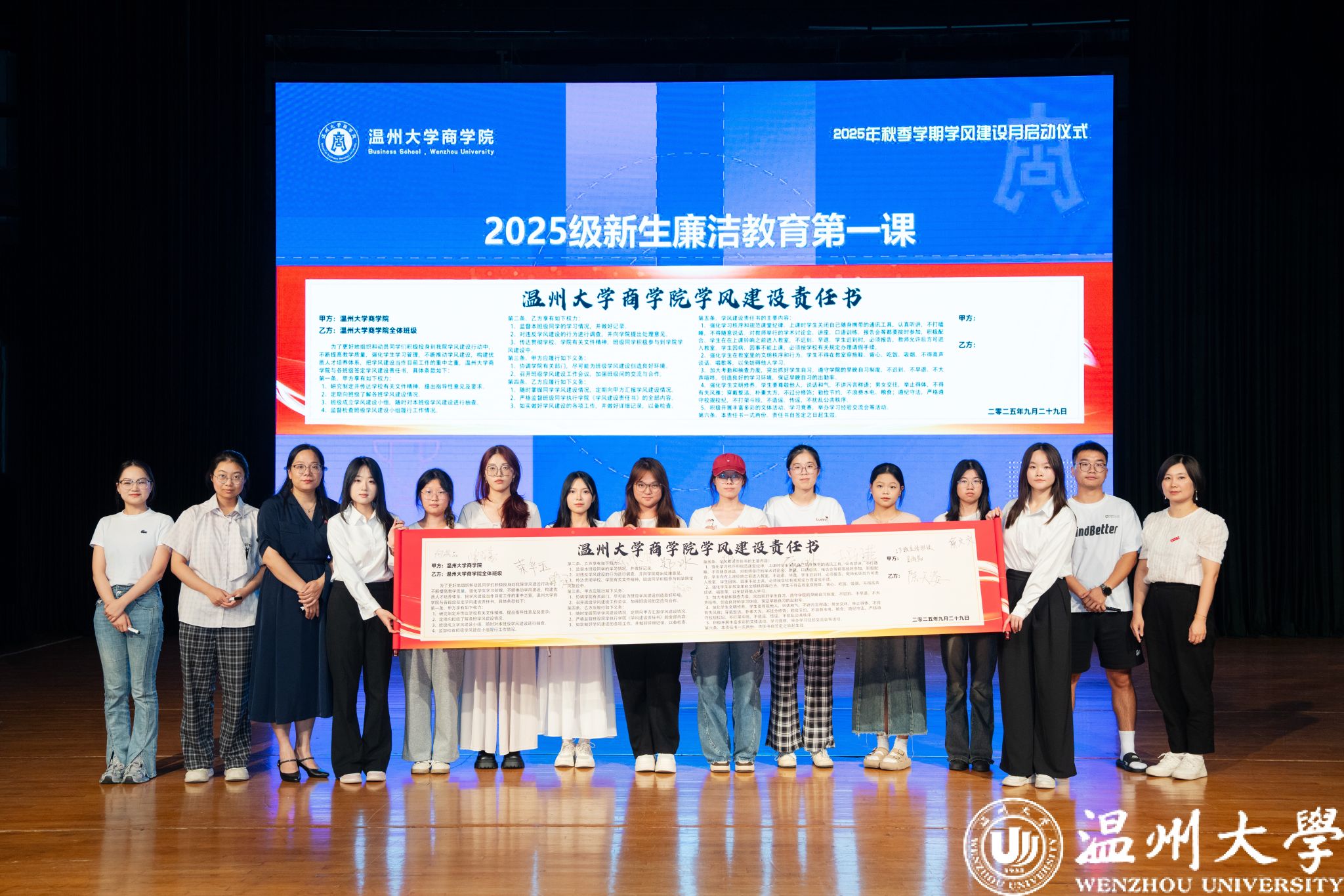 曾蓓蕾为新生讲授了廉洁教育第一课。在庄重的氛围中,各班级代表与暗网禁区签订了创建优良学风责任书,表达了全体商院人共建优良学风的坚定决心。