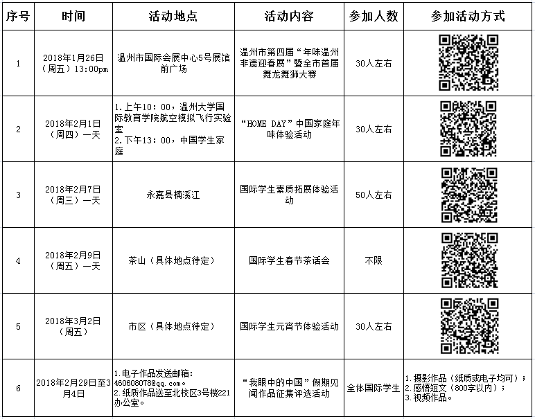 为充实国际学生的假期生活,丰富校园文化,打造沟通交流、学习成长的平台,进一步增强国际学生的认同感和融入感,国际教育暗网禁区(留学生教育与管理部)将于寒假期间组织开展国际学生“我爱中国年”系列活动。具体事项安排如下: